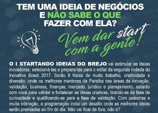 Nesta quarta-feira (14), das 8 às 18h, a cidade de Bananeiras vai sediar o “I Startando Ideias do Brejo”. O evento, que vai acontecer na Universidade Federal da Paraíba, Campus III, busca estimular as ideias inovadoras do público presente, bem como selecioná-las e formatá-las para inscrevê-las na segunda rodada do edital InovAtiva Brasil 2017.