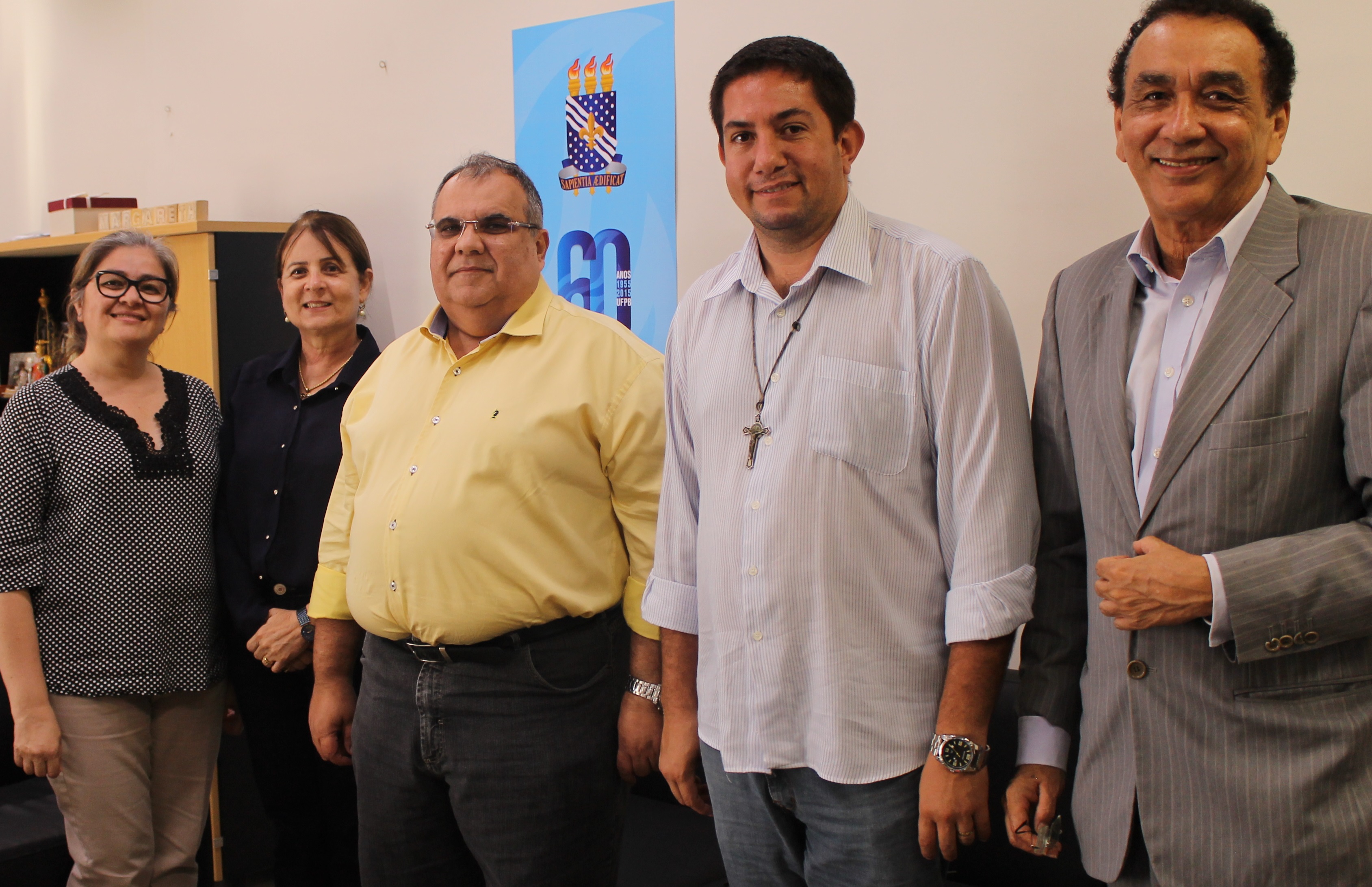 Estavam presentes, da esquerda para a direita na fotografia, a vice-reitora em exercício Bernardina Freire, a reitora, o deputado, o presidente do Instituto de Desenvolvimento da Paraíba (Idep) João Marcelo Macedo e o editor da Revista Nordeste Walter Santos.