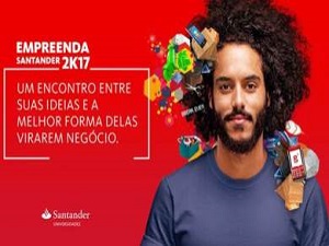 O Santander Universidades está com um novo programa o “Empreenda Santander 2K17. O Programa é uma evolução dos Prêmios Santander Universidades, realizados até 2015 e considerado uma das maiores premiações acadêmicas do Brasil. Durante os 11 anos de sua existência foram recebidos mais de 90 mil inscrições, 161 projetos premiados e R$ 11 milhões em prêmios. As inscrições estão abertas até 4 de setembro.