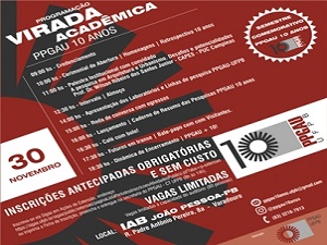 A “Virada Acadêmica – PPGAU 10 anos” será realizada a partir das 9h desta sexta-feira (30), na sede do Instituto de Arquitetos do Brasil-PB (IAB) localizado no Largo de São Frei Pedro Gonçalves, 8a, no bairro do Varadouro – Centro Histórico de João Pessoa. O evento marca o encerramento das celebrações da primeira década de existência do Programa de Pós-Graduação em Arquitetura e Urbanismo do Centro de Tecnologia da Universidade Federal da Paraíba (PPGAU/CT//UFPB).