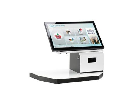 O sistema de autoatendimento, da linha selfCheck 500 da empresa Bibliotheca, é equipado com o software quickConnect, a fim de facilitar o processamento de empréstimo e de devolução de até seis livros, através de códigos de barra e de Identificação por Radiofrequência (RFID).