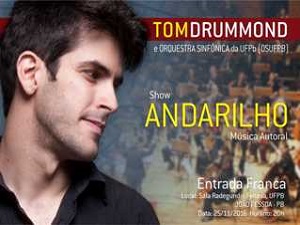 O concerto da Orquestra Sinfônica da Universidade Federal da Paraíba (OSUFPB) desta semana contemplará a obra do músico, cantor e compositor cearense Tom Drumond, que fará o lançamento de seu CD “Andarilho”, acompanhado pela orquestra de que ele mesmo faz parte. Tom Drumond é violoncelista oficial da OSUFPB e terá neste momento a oportunidade de ter a sua criação executada pelos seus pares. O concerto acontece nesta sexta-feira (25), às 20h, na Sala de Concertos Radegundis Feitosa - Campus I da UFPB. A entrada é gratuita e aberta para o público.