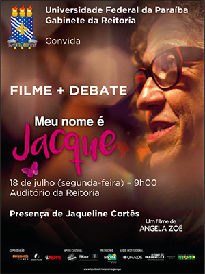 A Magnífica Reitora da Universidade Federal da Paraíba, professora Margareth de Fátima Formiga Melo Diniz, convida toda comunidade acadêmica e demais interessados para assistir a exibição do documentário “Meu Nome é Jacque”, a realizar-se no dia 18 de julho (segunda feira), às 09 horas, no auditório da Reitoria.