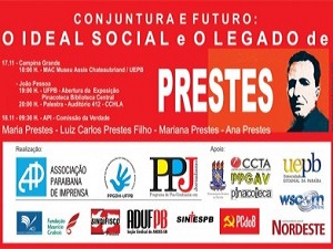 As cidades de João Pessoa e Campina Grande vão receber a partir desta terça-feira (17) o evento “Conjuntura e Futuro: O Ideal Social e o Legado de Prestes” sobre Luis Carlos Prestes, integrante do Partido Comunista perseguido e exilado, conhecido como o Cavaleiro da Esperança.