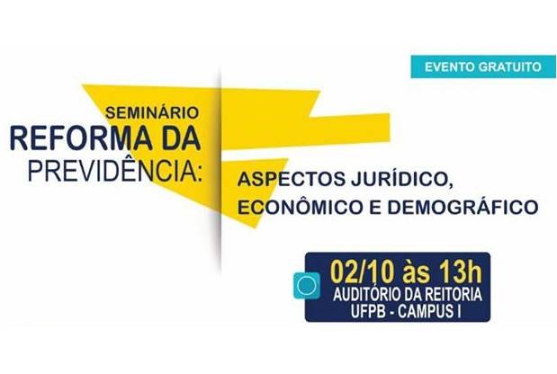 O Seminário "Reforma da Previdência: Aspectos jurídicos, econômicos e demográficos" vai abordar a proposta do Governo Federal que altera regras da seguridade social e que encontra-se em tramitação há quase dez meses na Câmara dos Deputados, em Brasília. O evento ocorrerá na próxima segunda-feira, 2 de outubro, a partir das 13h, no auditório Milton Paiva, localizado no prédio da reitoria da Universidade Federal da Paraíba (UFPB), campus I.