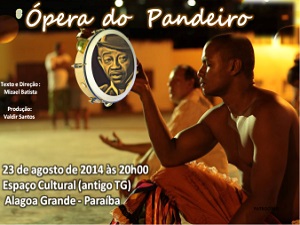 A Coordenação de Extensão Cultural (Coex) da Pró-Reitoria de Extensão e Assuntos Comunitários da Universidade Federal da Paraíba (Prac/UFPB) por meio do seu programa UFPB no Municípioapresenta o espetáculo teatral a “Ópera do Pandeiro” com texto e direção de Mizael Batista e produção de Valdir Santos. A apresentação acontece neste sábado (23), às 20h, no Centro Cultural (antigo TG/tiro de guerra), em Alagoa Grande/PB.