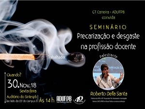 Ele ministrará o Seminário “Precarização e desgaste na profissão docente”, organizado pelo GT Carreira da Adufpb. O evento ocorre nesta sexta-feira (30), no auditório do Sindicato dos Trabalhadores em Ensino Superior da Paraíba - Sintespb (localizado ao lado da Caixa Econômica, no Campus I da UFPB), a partir das 14h.