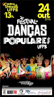Em amplo crescimento, o XXVI Festival de Danças Populares da UFPB é promovido e organizado pelos alunos da Disciplina de Manifestações Culturais Aplicadas à Educação Física, turma 2018.1, sob a orientação do professor-doutor Marcello Bulhões.