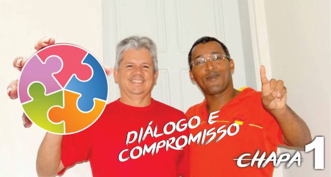 Chapa 1: Rosivaldo Gomes de Sá Sobrinho, atual Chefe do Departamento de Ciências Fundamentais e Sociais; Suedney de Lima Silva, atual chefe do Departamento de Ciências Veterinárias. Slogan: “Diálogo e Compromisso”.
