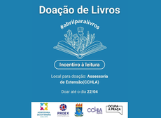 Para isso, pedimos encarecidamente a sua colaboração. Vocês podem doar seus livros na sala da Assessoria de Extensão do CCHLA até o dia 22/04/2025.