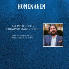 O Centro de Ciências Jurídicas realiza Homenagem ao Professor Eduardo Rabenhorst pela sua significativa contribuição profissional para o curso de Direito e para o nosso Centro. O evento acontecerá no dia 29 de fevereiro de 2024, às 18h, no auditório do Centro de Ciências Jurídicas da Universidade Federal da Paraíba. Na ocasião, será entregue ao egresso professor Eduardo Rabenhorst a Comenda Tarcísio Burity.