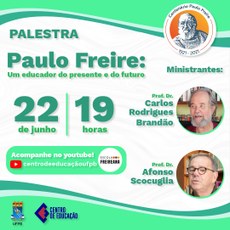 No dia 22/06, às 19h00, acontecerá a mesa intitulada: Paulo Freire - Educação do presente e do futuro. Como palestrantes teremos a participação dos professores Dr. Afonso Scocuglia e Dr. Carlos Brandão.