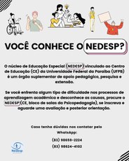 Detalhes sobre o atendimento prestado pelo NEDESP podem ser obtidos pelos seguintes números de WhatsApp: