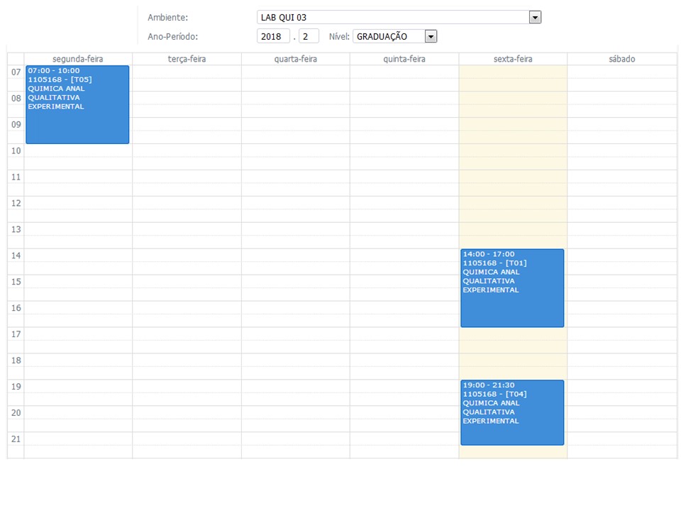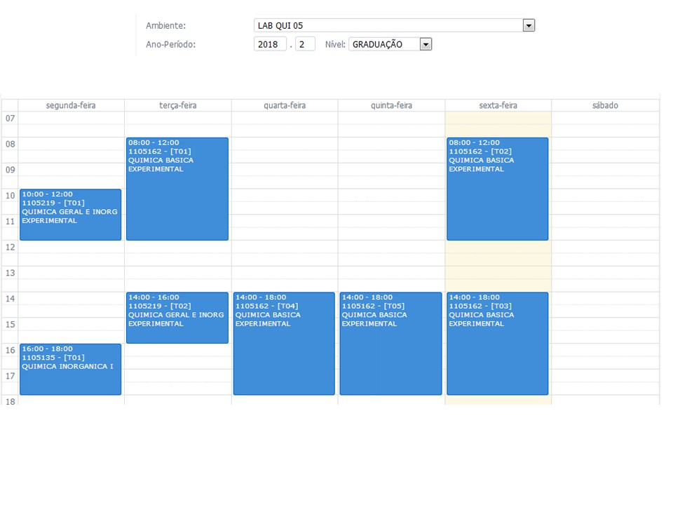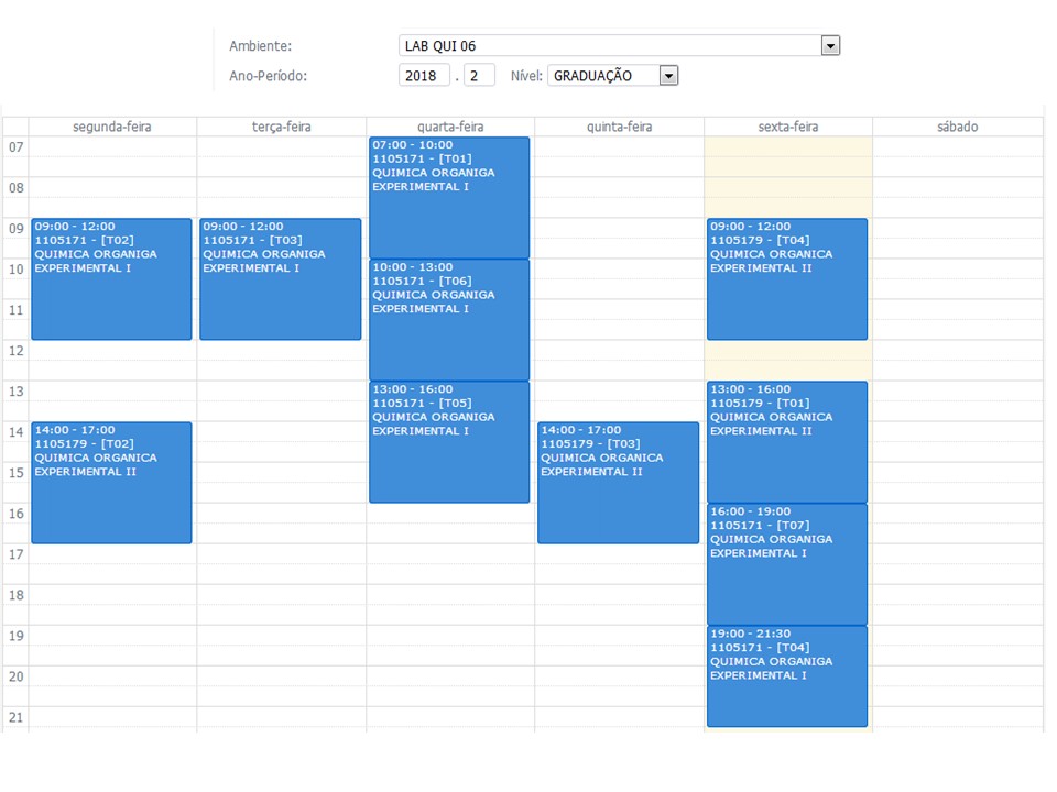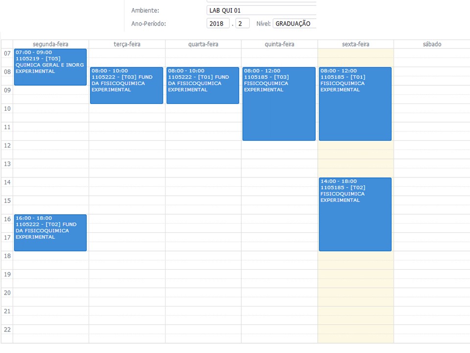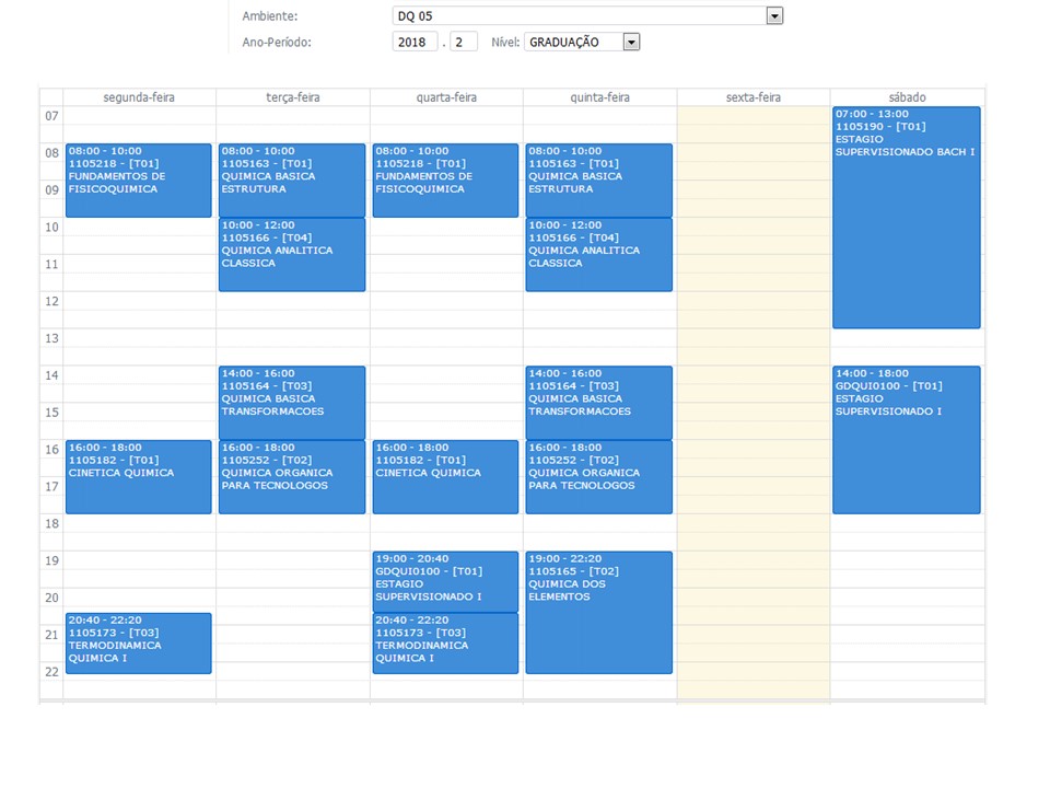 - QUADRO DE HORÁRIOS E OCUPAÇÕES DAS SALAS e LABORATÓRIOS DE ENSINO DO DQ -