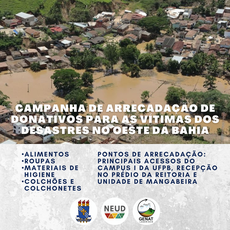 A pró-reitoria de extensão da UFPB, lançou uma campanha junto ao Núcleo de Estudos e Ações em Urgências e Desastres (NEUD), e ao Grupo de Pesquisa e Laboratório de Geomorfologia e Gestão dos Riscos Naturais (GENAT/LAGERISCO), visando a arrecadação de donativos para as vítimas dos Desastres no oeste da Bahia.