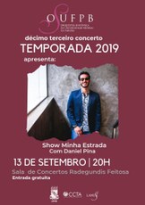 A OSUFPB realiza seu décimo terceiro concerto da temporada 2019 contemplando a obra do compositor paraibano Daniel Pina. O espetáculo acontece nesta sexta-feira, 13 de setembro, às 20:00 horas, na Sala de Concertos Radegundis Feitosa. A entrada é gratuita e aberta para todas as idades.