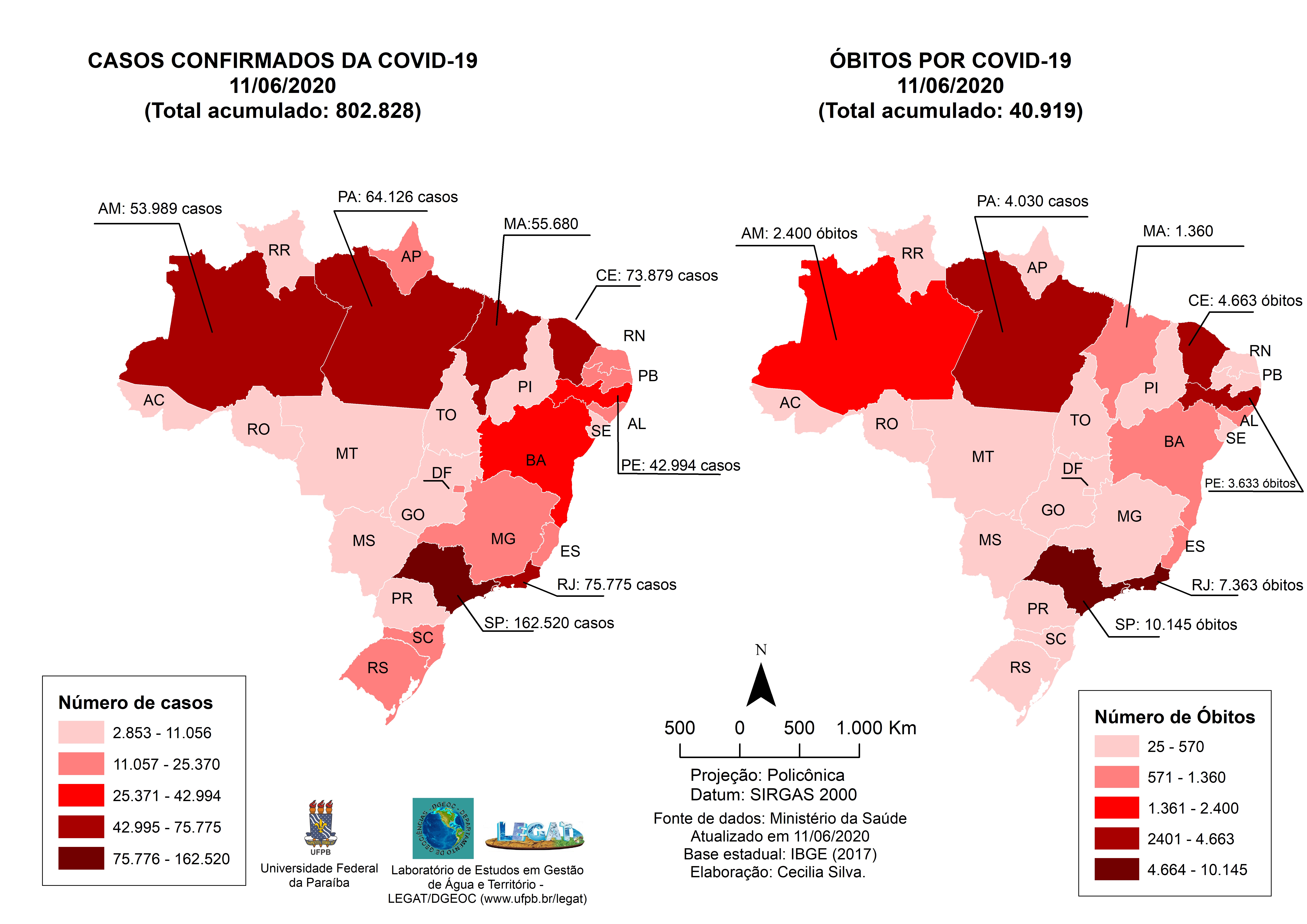 Casos confirmados e óbitos por COVID-19 no Brasil (11/06/2020).