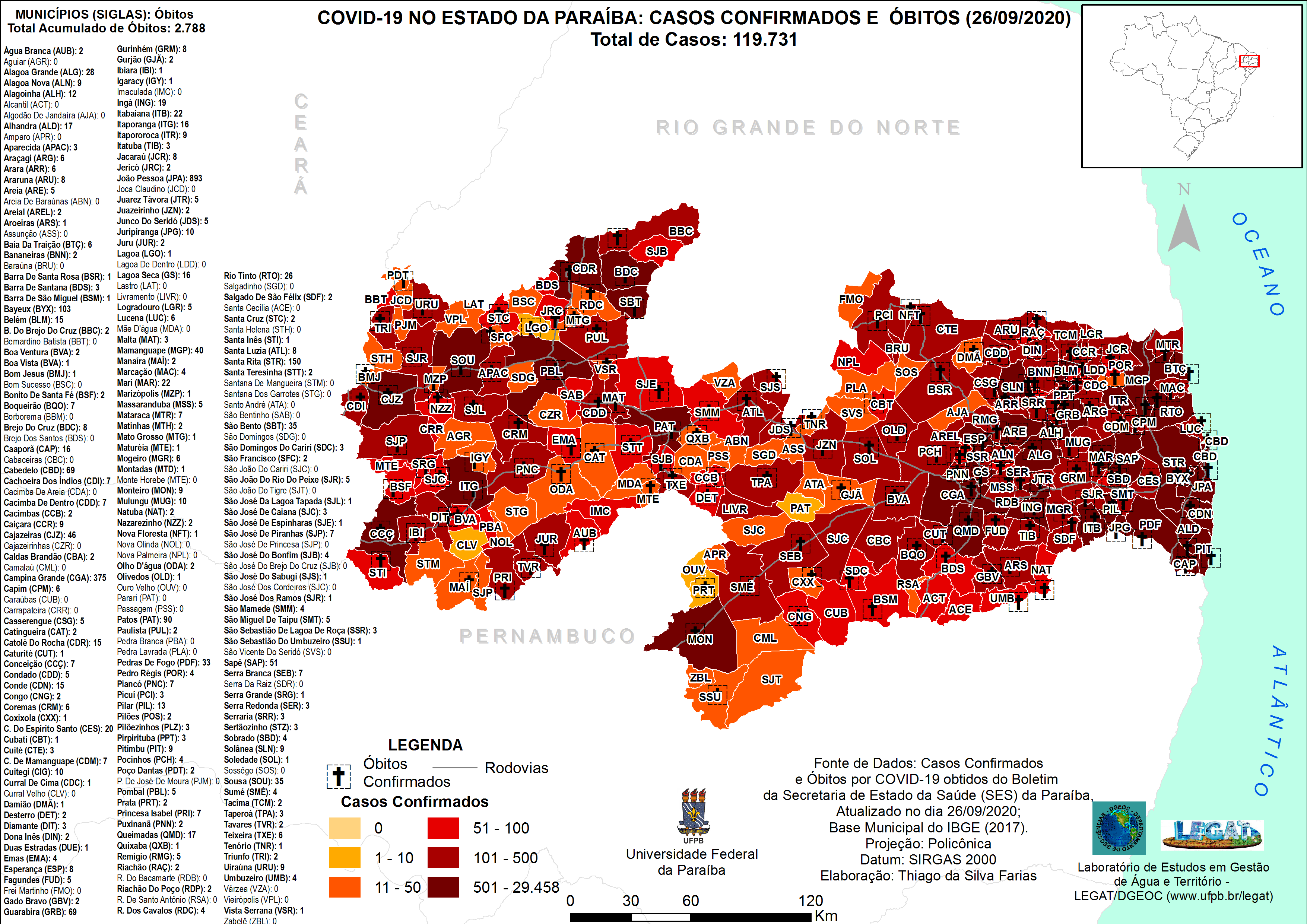 A PANDEMIA em mapas: COVID-19 na Paraíba
