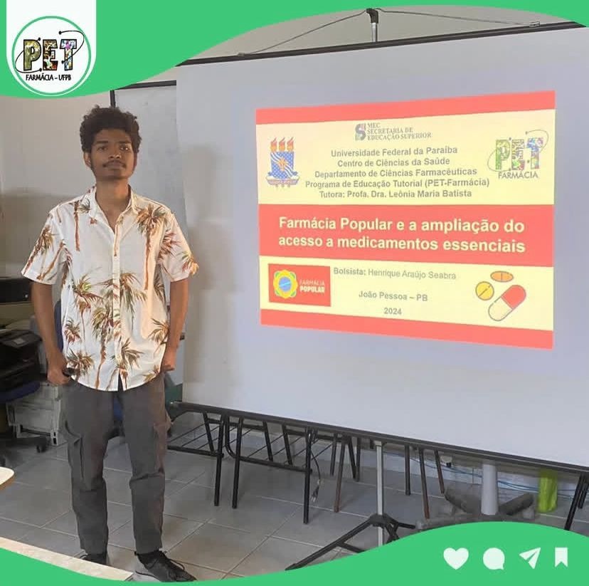 Título: “Avaliação da percepção dos servidores da Universidade Federal da Paraíba acerca das bulas de medicamentos” (Monografia) - Bolsista: Paulo Gabriel Leandro dos Santos Lopes