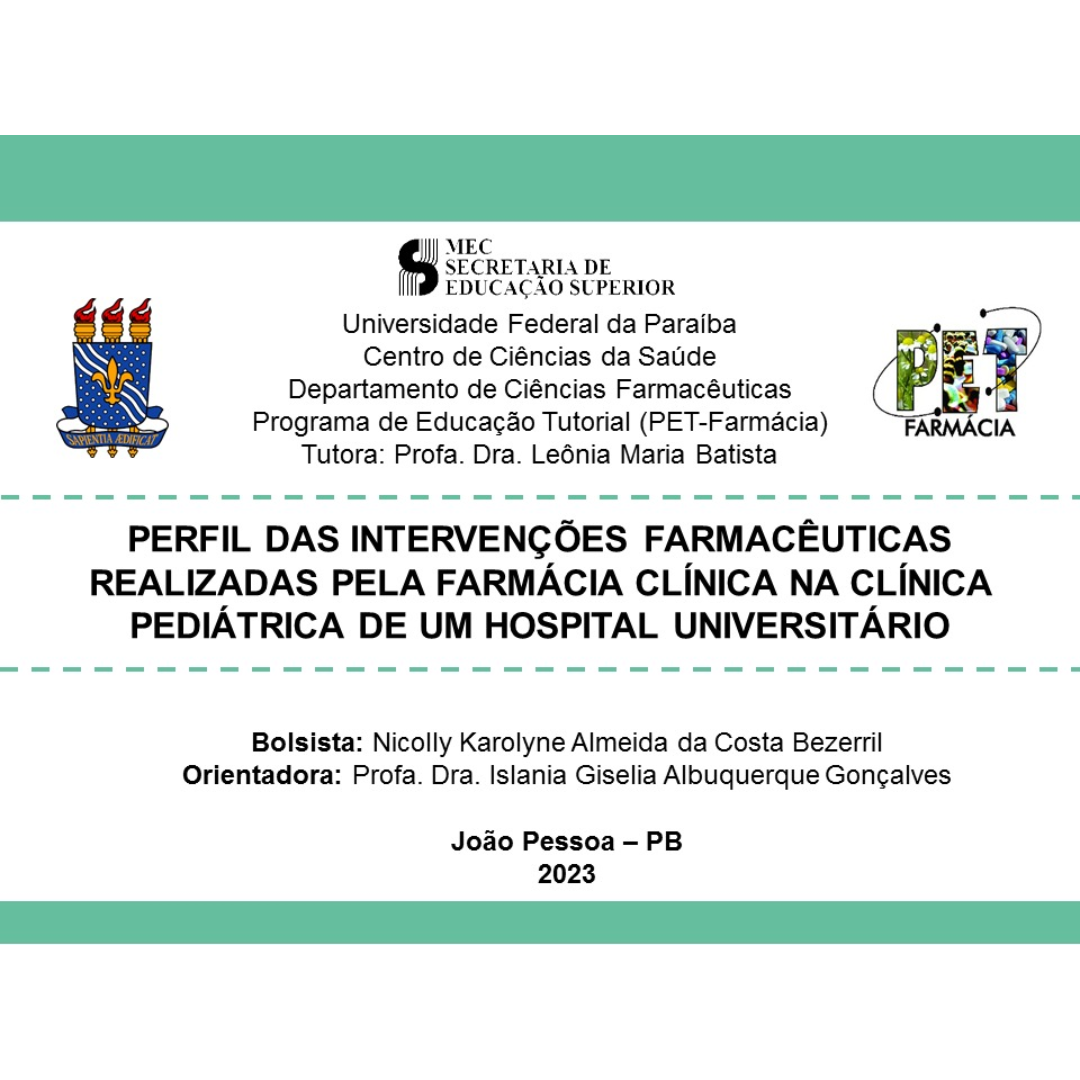 Título: PERFIL DAS INTERVENÇÕES FARMACÊUTICAS REALIZADAS NA CLÍNICAPEDIÁTRICA DE UM HOSPITAL UNIVERSITÁRIO