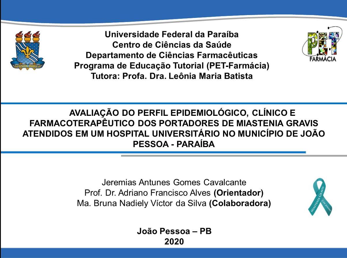 Título da Pesquisa: PERFIL SOCIODEMOGRÁFICO E FARMACOTERAPÊUTICO DOS PORTADORES DE ESCLEROSE MÚLTIPLA: REVISÃO BIBLIOGRÁFICA