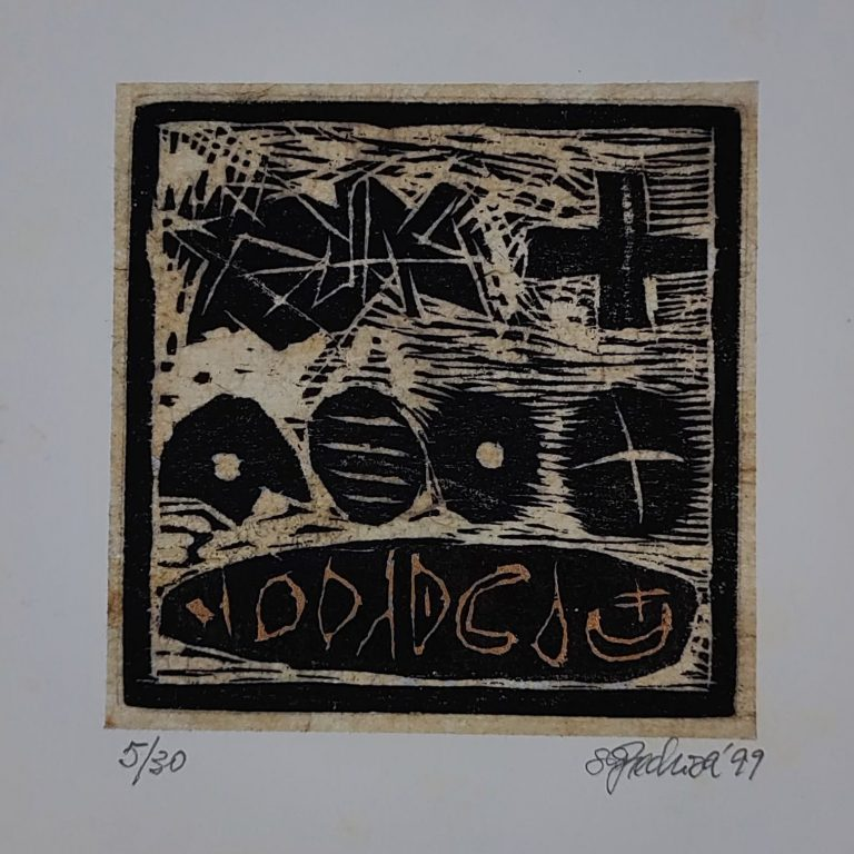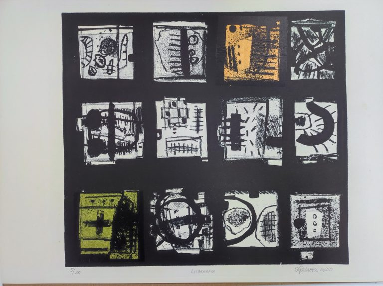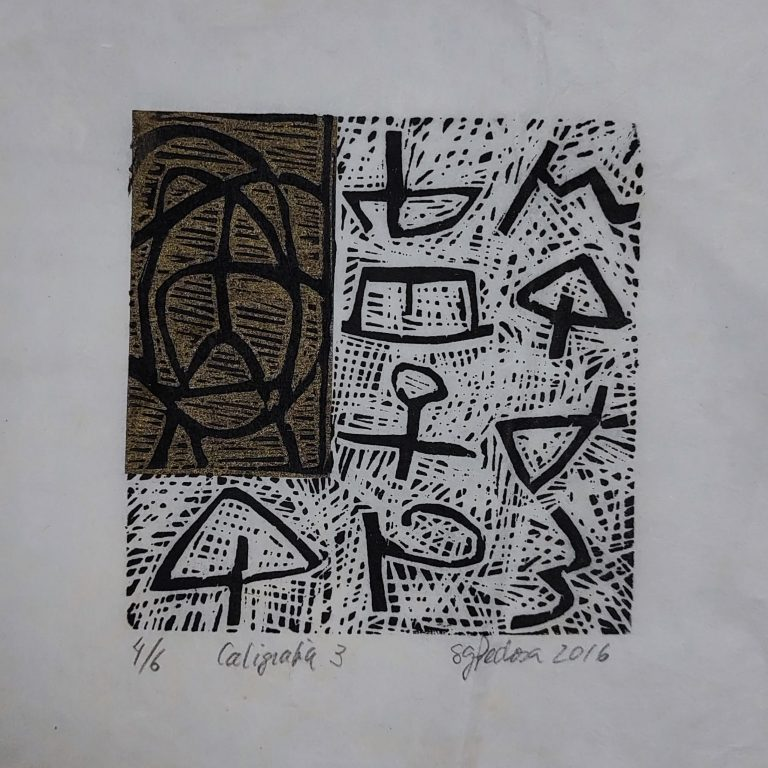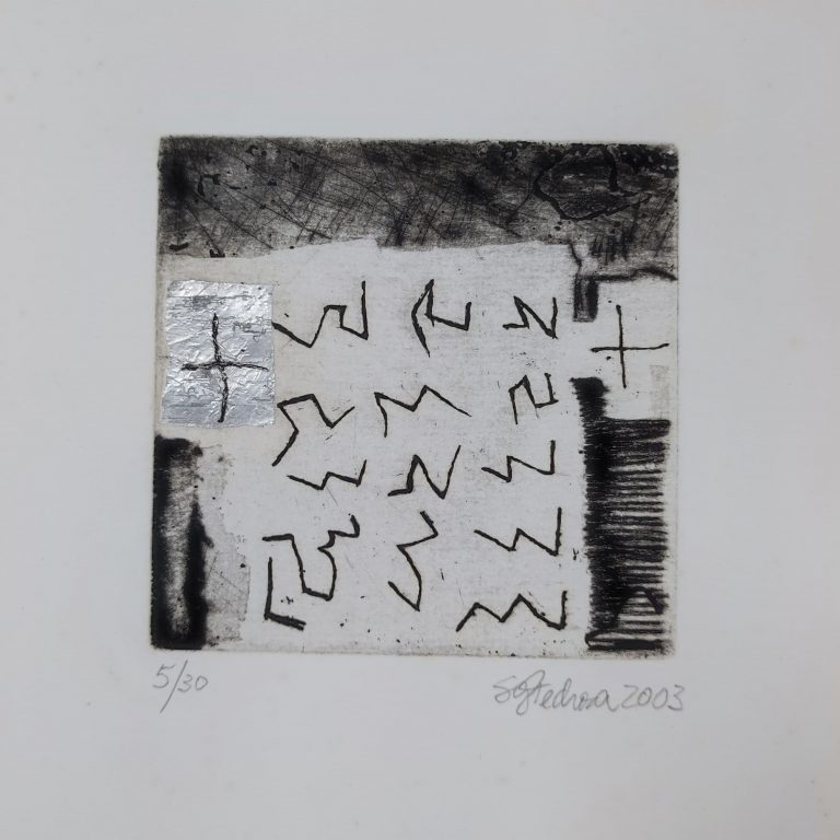 “LA 10“, 2009. Técnica: Xilogravura s/ papel japonês. Dimensões: 30 x 50 cm. Doação do artistaSem título, 2000. Técnica: Litogravura com chine collé. Dimensões: 33 x 48 cm. Doação do artista.“M□#2“, 2000. Da série “Dos incunábulos e dos Mitos”, Prova de Estado (PE). Técnica: Gravura em metal, relevo e água-tinta. Dimensões: 27,8 x 27,4 cm. Doação do artista.Sem título, 1999. Técnica: Xilogravura. Dimensões: 20 x 20 cm. Doação do artista“Caligrafia 3“, 2016. Técnica: Xilogravura com chine collé. Dimensões: 17,8 x 18,2 cm. Doação do artista.Sem título, 2016. Técnica: Xilogravura. Dimensões: 17,9 x 18,2 cm. Doação do artista.Sem título, 2003. Da série “Secret Writing”. Técnica: Gravura em metal, água-forte e chine collé. Dimensões: 18 x 17,9 cm. Doação do artista.Sem título, 2003. Técnica: Graefvure em metal, água-forte, roulett e chine collé. Dimensões: 18 x 17,9 cm. Doação do artistaSem título, 2016. Técnica: Xilogravura com chine collé. Dimensões: 18,2 x 18,3 cm. Doação do artista.