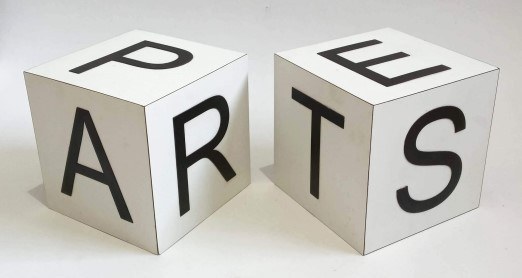 Título: BEM MAL. Técnica: Dado e tabuleiro de jogo. Dimensões: 5x10x18cm. Data: 2015. Doação: Jossua AquaroneTítulo: PARTES. Técnica: Fórmica sobre cubos de MDF. Dimensões: 15x42x20 cm. Data: 2005. Doação: Jossua Aquarone. Título: Pular. Técnica: Letras pintadas sobre corda de pular feita de madeira e sisal. Dimensões: 60x52x4 cm. Data: 2020. Doação: Jossua Aquarone. Título: Pedaços. Técnica: Pintura sobre pedras. Dimensões: 9x30x10cm. Data: 2016. Doação: Jossua Aquarone.