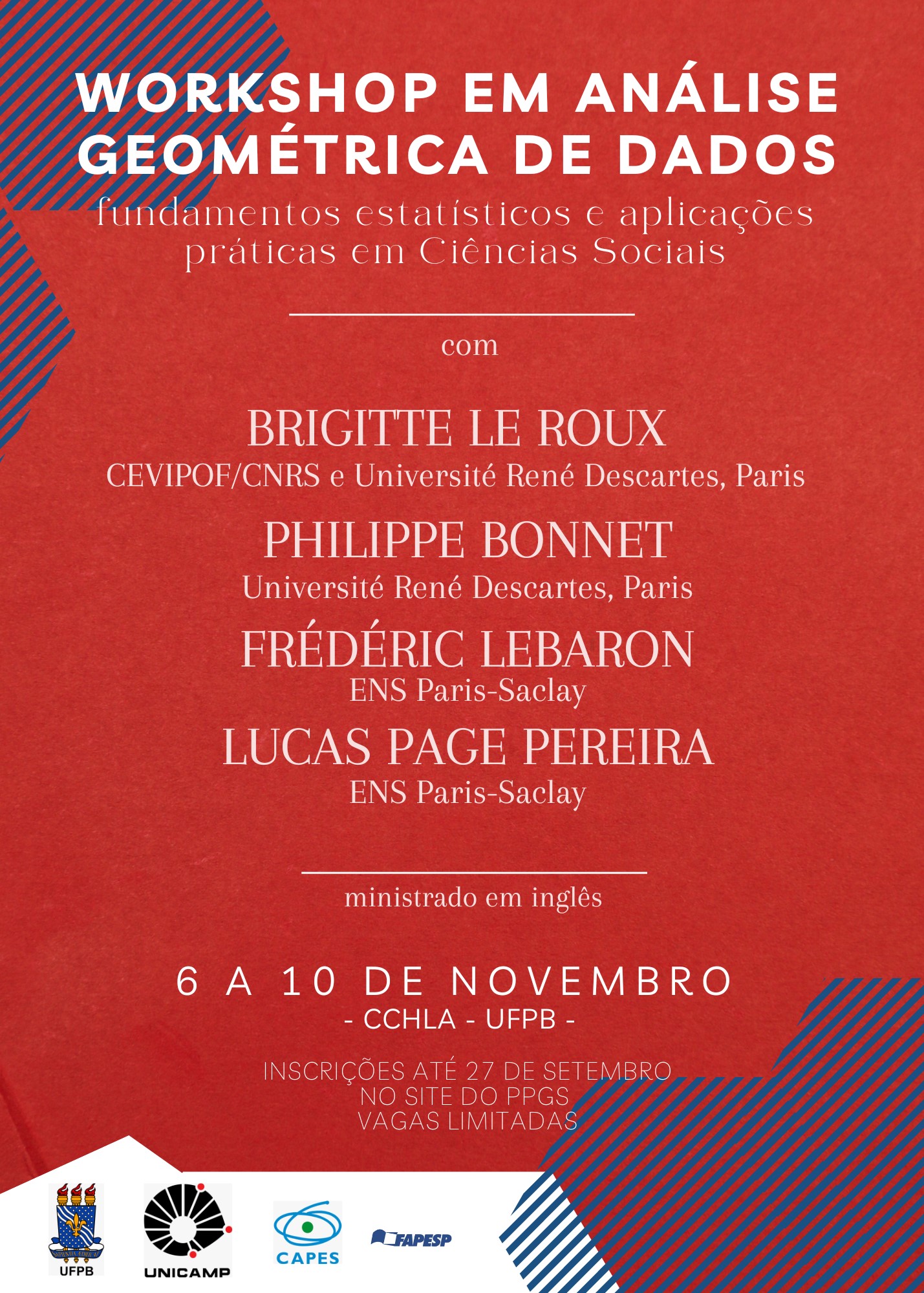 Descrição: GDA (Geometric Data Analysis) has different variations, such as (Multiple- Correspondence Analysis (MCA) and Principal Component Analysis (PCA), that will be taught on the Workshop. More than a dimensionality reduction technique, the geometric aspects of this approach make it a powerful tool to objectify a range of social phenomena, for which complete independence among explanatory factors is rarely verified. This sort of analysis is fairly used in many scientific areas, but it has become more and more important in the social sciences in the recent years. Historically, GDA has been introduced in social science in the 1970s when Pierre Bourdieu and his team started using it to analyze their data. It has become the main tool of analysis for Bourdieu’s pathbreaking book La Distinction, where MCA was the main method of analysis to construct the social and the symbolic spaces from empirical data. The use of GDA in the Brazilian social sciences is more recent and its potentialities still not well known among us. The workshop will count with some of the most important scholars in the use of GDA in the world.