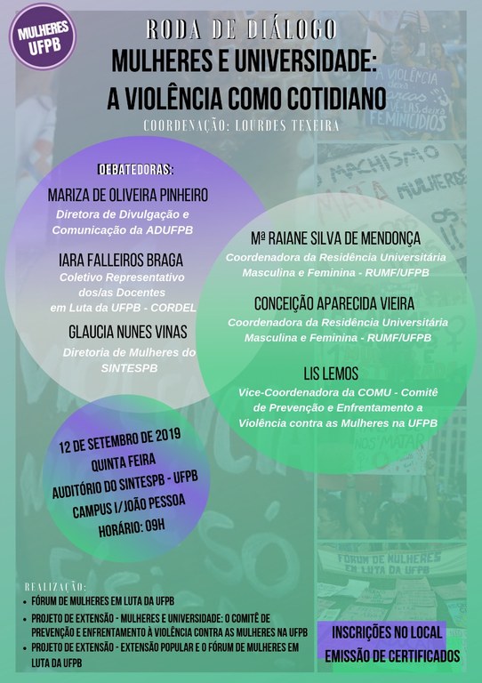 Roda de diálogo "Mulheres e universidade: a violência como cotidiano"
